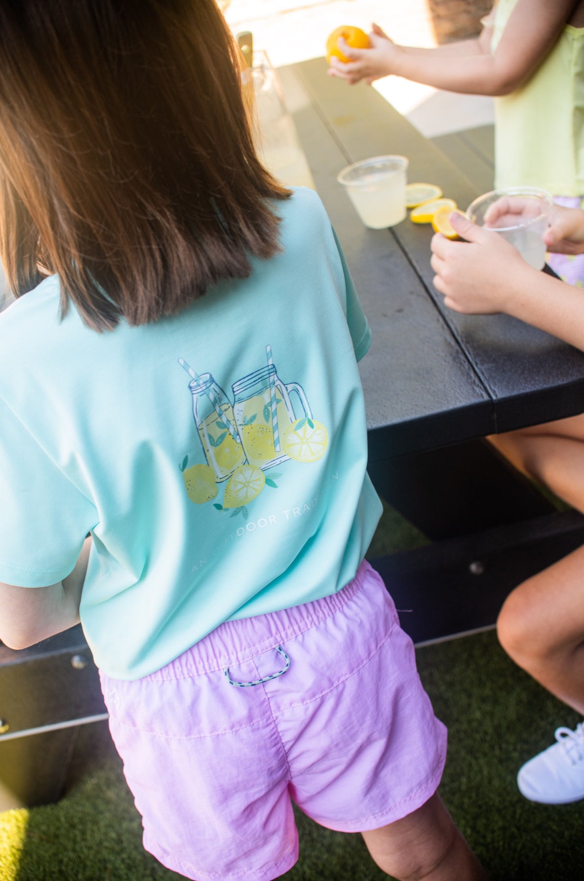 The Girls' Pro Performance Short Sleeve T-shirt – Lemonade Stand Art is as fresh as summer itself. Made from a 90% polyester 10% spandex UPF 50+ blend, this lightweight tee delivers quick-dry, moisture-wicking comfort with sun protection built in. Custom hand-painted lemonade artwork on the back brings playful charm to every adventure.