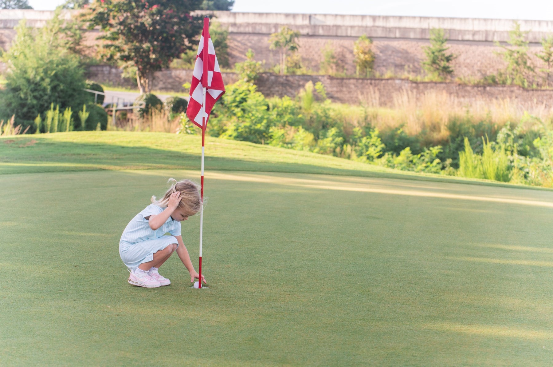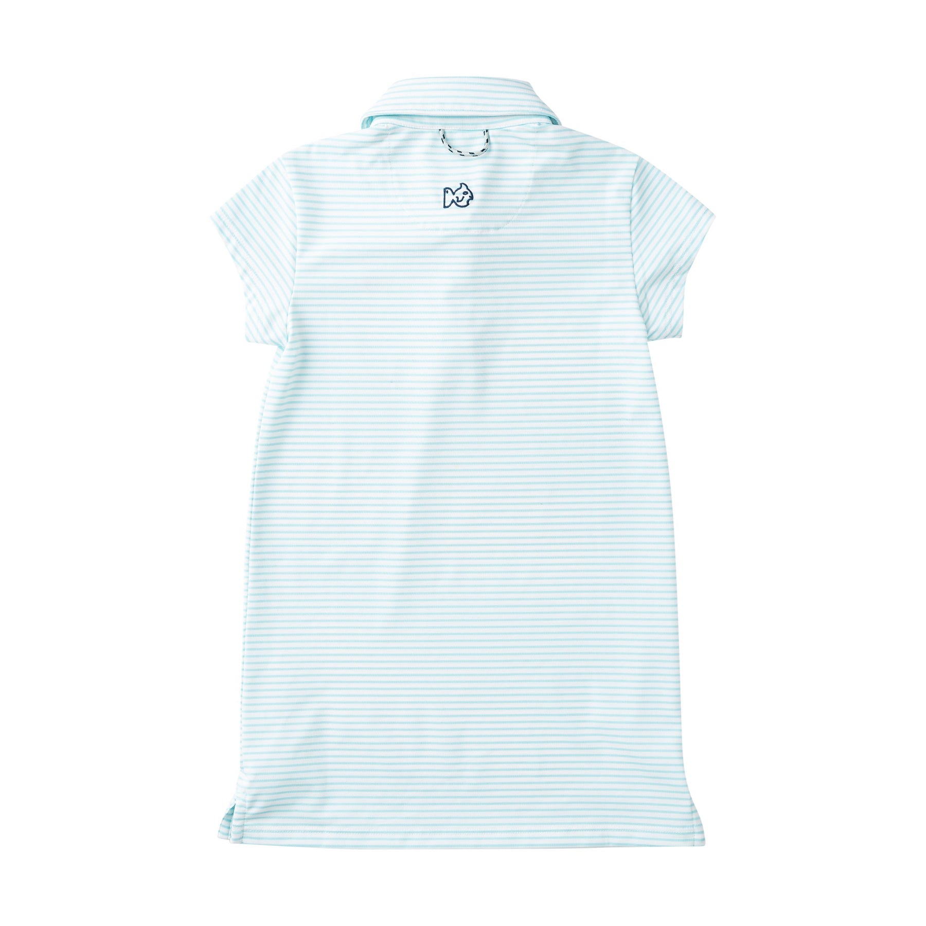 The PRODOH Girls' Polo Dress in Aruba Blue Stripe — UPF 50+ Performance Knit is perfect for sunny days on the course, court, or coast. Designed with breathable, moisture-wicking fabric, this girls' active dress offers UPF 50+ sun protection to block 98% of harmful UV rays. The soft, lightweight performance knit keeps her cool and comfortable, while the classic polo collar and 3-button placket add timeless style. Side slits allow for easy movement, and the PRODOH "Get Back Here Loop" adds utility for hanging after play.